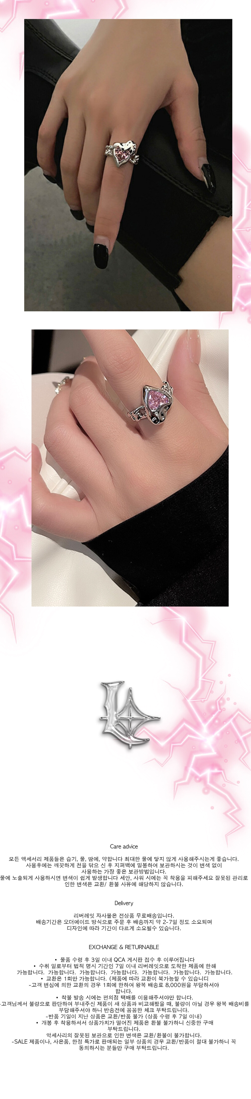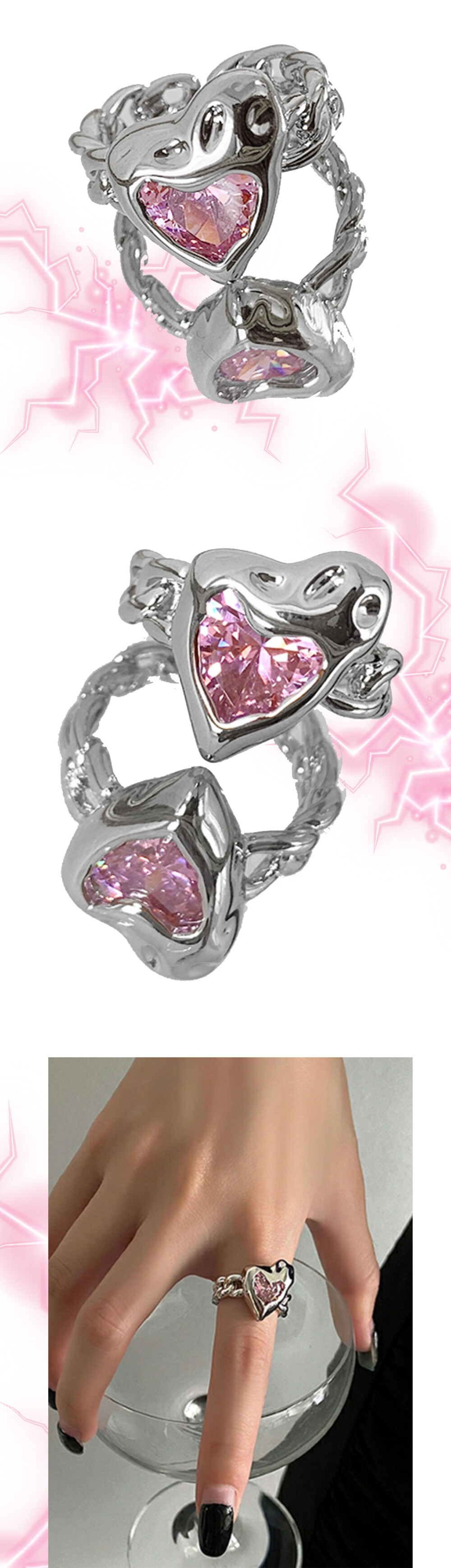 Pink Heart Cubic Silver Open Ring